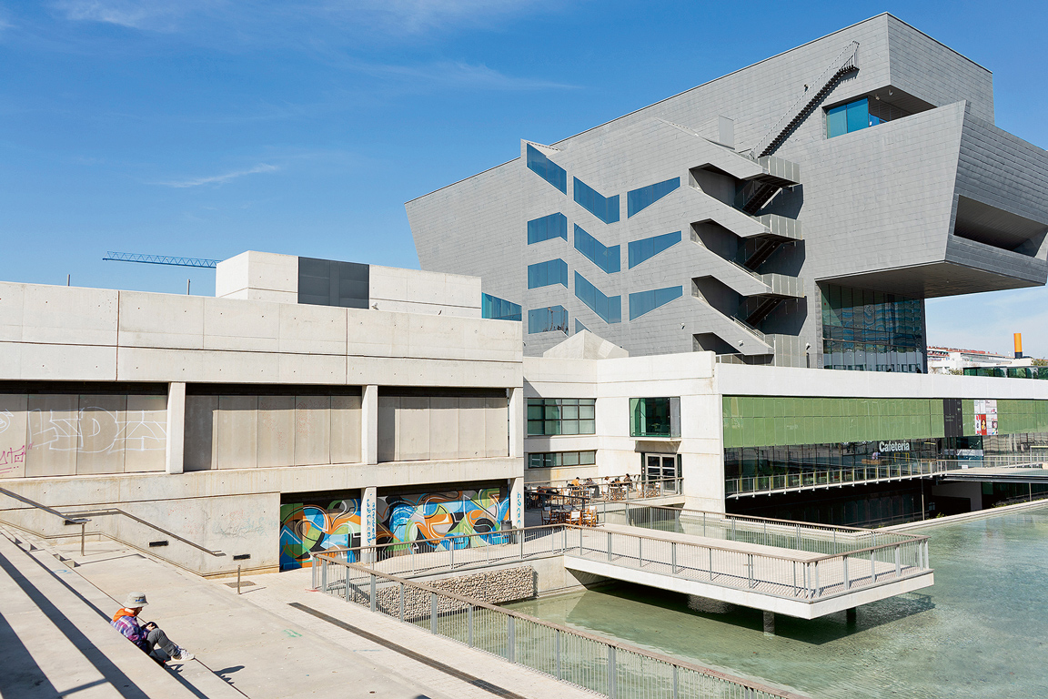 L’architecture Le bâtiment de cinq étages, situé juste à côté de la Torre Agbar, est lui-même un véritable accroche-regard, conçu par le célèbre cabinet d’architectes MBM. La construction allongée, semi-souterraine, a été imaginée comme une transition entre les quartiers d’El Clot et d’El Poblenou.