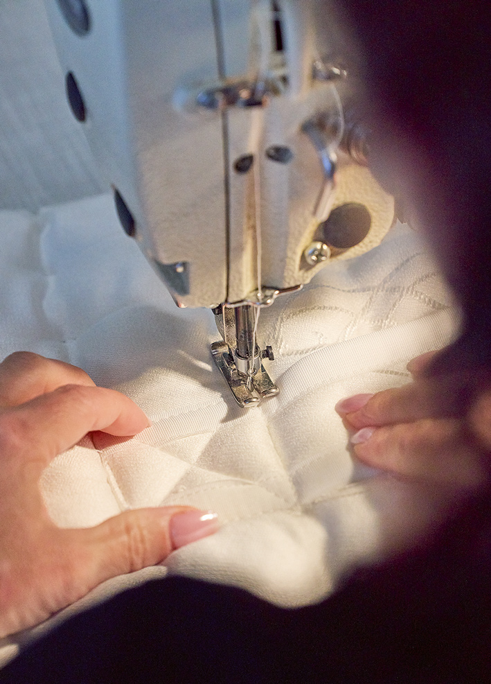 Mais rapidement, Marie Pugliese revient à l’essentiel: les couches du matelas. Cachemire, soie, crins de cheval… Ces derniers intriguent par leur texture légèrement rêche au toucher, mais étonnamment souple et ventilée. «Chaque matériau a sa fonction», précise-t-elle. Une fonction et, surtout, un mantra: aucun composant chimique ni de composant organique volatile. La literie est d’ailleurs certifiée Ecolabel. Superposées avec soin, ces couches seront ensuite emballées d’un survêtement, pour former le cœur du matelas.