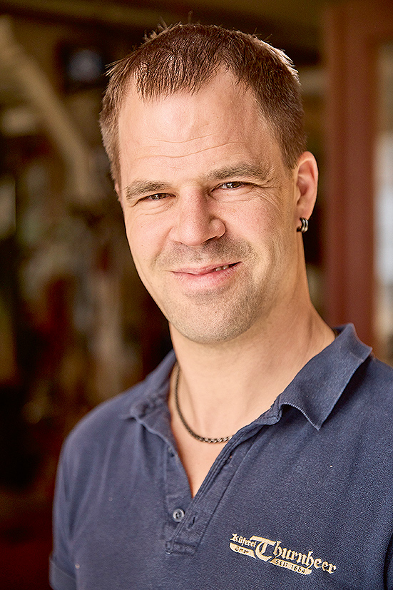 Die Küferei Thurnheer wurde 1854 von Jakob Thurnheer gegründet. Zu jener Zeit waren im Rheintaler Dorf Berneck noch mehrere Küfer tätig. Heute finden sich in der ganzen Schweiz nur noch fünf Küfereien. Martin Thurnheer führt den Familienbetrieb in der fünften Generation zusammen mit seiner Frau. Er stellt rund 150 Fässer im Jahr her, hat aber sein Angebot stark diversifiziert. Das klassische Volumen von Barriquefässern umfasst 225 Liter, die Küferei Thurnheer stellt aber auch massgefertigte Lagerfässer, Holzbadewannen oder andere Fassgebinde her. Früh übt sich: Sein erstes Fass baute Martin Thurnheer mit zehn Jahren.