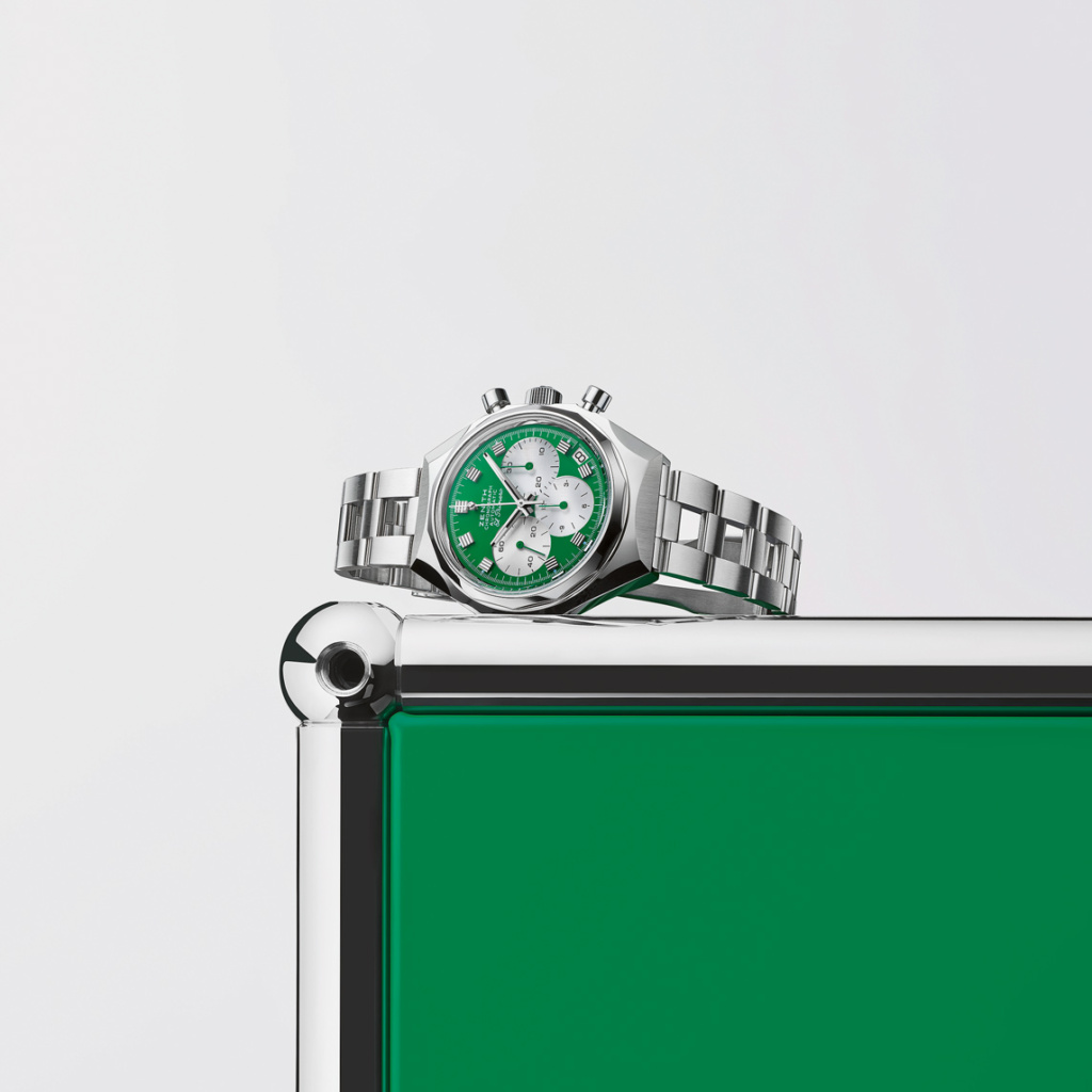 Die Elemente wurden zur Grundlage eines Möbelsystems, das die Welt eroberte. Diese beiden Schwergewichte des Schweizer Know-hows haben ihre Talente für eine Kapselkollektion von vier aussergewöhnlichen Uhren gebündelt: die Chronographen Zenith Defy Chronogrpaph USM. Bei der ersten Präsentation der Modelle während der Geneva Watch Days zauberte der ihnen gewidmete Raum im Hotel «Ritz Carlton» den Besuchern ein Lächeln ins Gesicht. Die farbenfrohen Regale gaben den Ton an, die Uhren lagen auf speziell für diesen Anlass angefertigten Metalltabletts mit Rohren und den charakteristischen kugelförmigen Schrauben. Von den 14 bei USM verfügbaren Farbtönen wählte Zenith vier aus: Grün, Orange, Blau und Gelb.