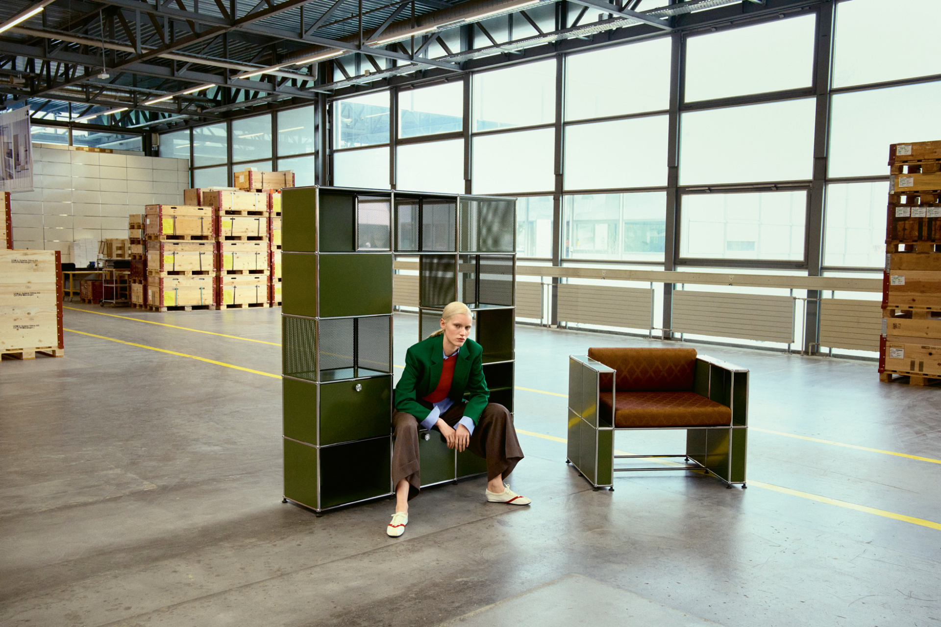 Regal in Olivgrün, USM.