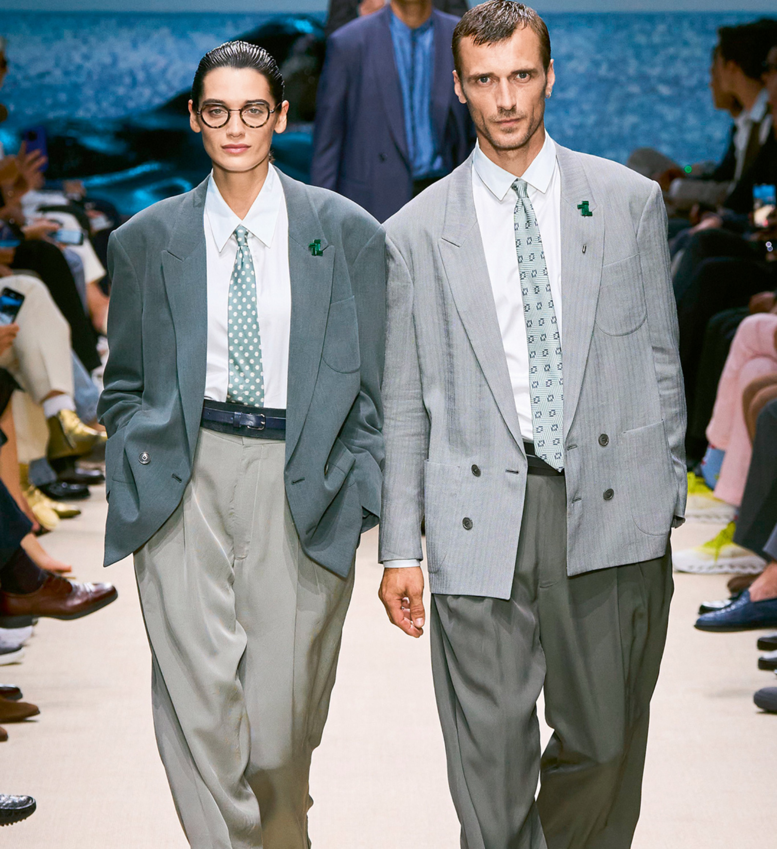 Si elle fut longtemps cantonnée aux vestiaires formels, la cravate s’est imposée cette saison comme la pièce la plus désirable du registre preppy. Vue partout sur les podiums, comme ci-dessus chez Armani, elle se détache de son cadre strict pour devenir un véritable terrain de jeu stylistique. Fine, souple, parfois presque molle, elle semble avoir été empruntée au vestiaire de grand-papa, chargée d’une mémoire affective plus que d’un protocole.