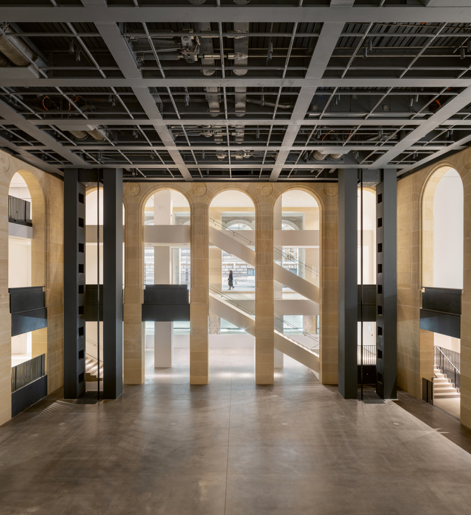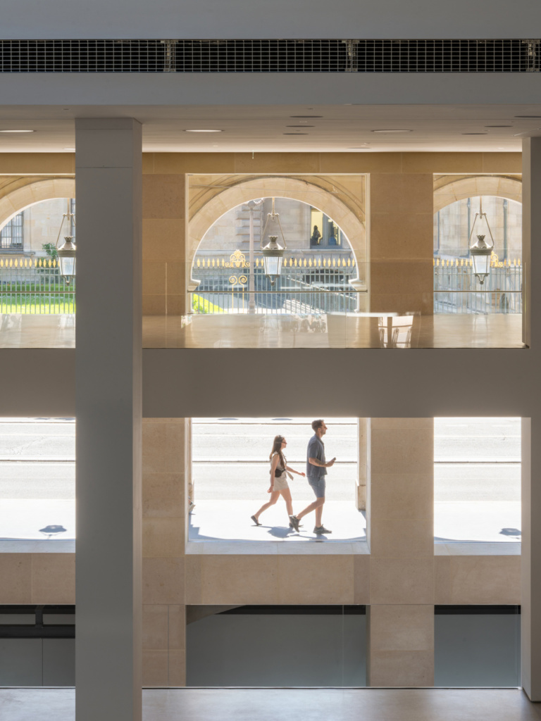 Les généreuses baies vitrées contribuent amplement à cet effet engageant, voulu par le starchitecte Jean Nouvel. Le visionnaire n’en est pas à son coup d’essai en matière muséale, lui qui a déjà signé l’Institut du Monde arabe, le musée Branly ou le premier site de la Fondation Cartier, pour ne mentionner que quelques repère parisiens (sans oublier le Start Museum de Shanghai ou le Louvre Abu Dhabi). La transparence lui tient à cœur, elle qui «ancre ce sentiment d’appartenance à la rue, aux rues de l’histoire parisienne». Le vénérable bâtiment haussmannien de 1855, initialement conçu comme hôtel, a ainsi été totalement évidé, les cours centrales éclairées par un toit de verre. L’intérieur s’est mué en «machine à exposer», grâce à cinq plateformes en acier, qui se déplacent comme des ascenseurs, changeant radicalement la configuration des lieux selon les expositions. Concepteurs de télécabines et ingénieurs des machineries de théâtre ont été consultés pour la création de ce lieu patrimonial, mais entièrement transformable.