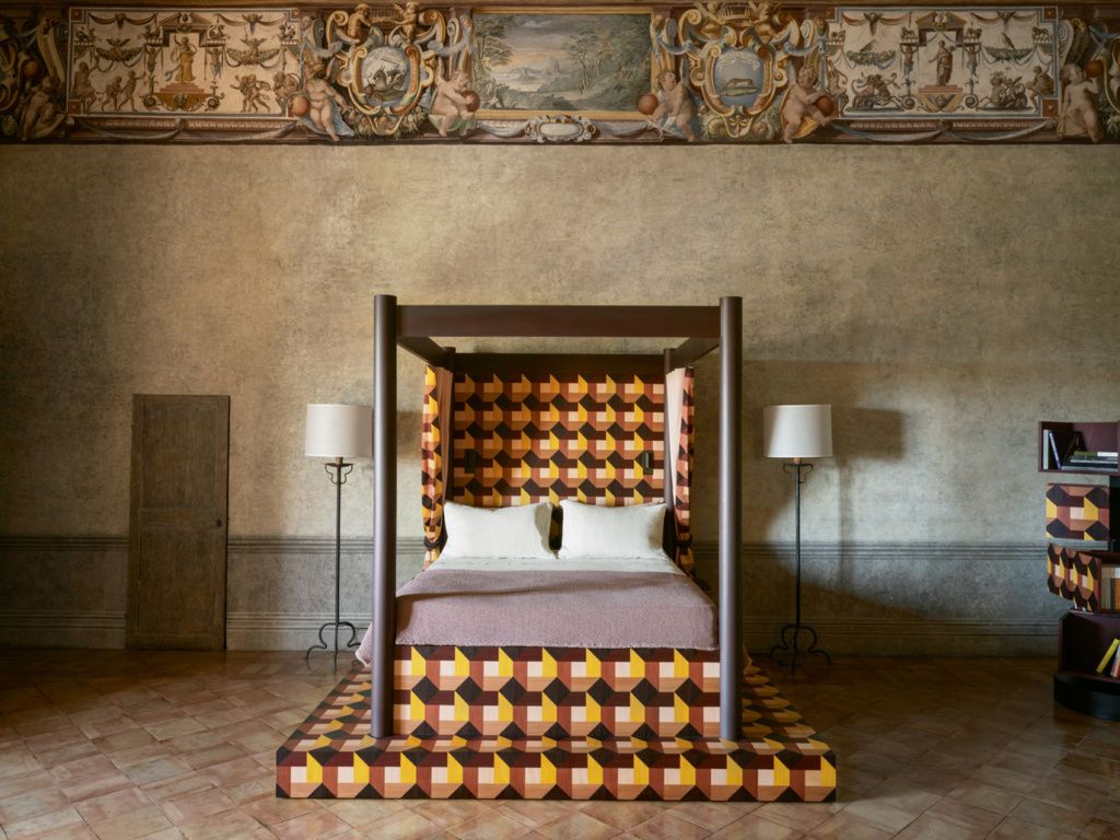 En 2023, India Mahdavi a réaménagé la Villa Médicis de Rome, érigée au XVIe siècle et siège de l’Académie française. Elle a apporté une touche contemporaine à ces pièces historiques au moyen de couleurs vives et de motifs audacieux. Elle a fait appel à des artisans français et italiens pour créer les meubles, les tapis, les tissus et les carreaux.