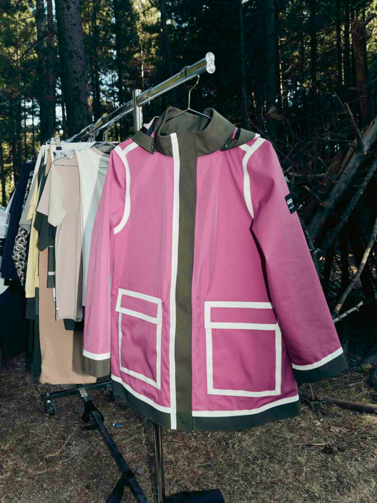 À l’occasion de son 170e anniversaire, la marque française Aigle avait demandé à India Mahdavi de créer une botte en caoutchouc. Cette collaboration entre désormais dans sa deuxième phase avec un imperméable: «Purple Rain est fait pour passer de joyeux moments sous la pluie, on devrait chanter en le portant», explique la créatrice.