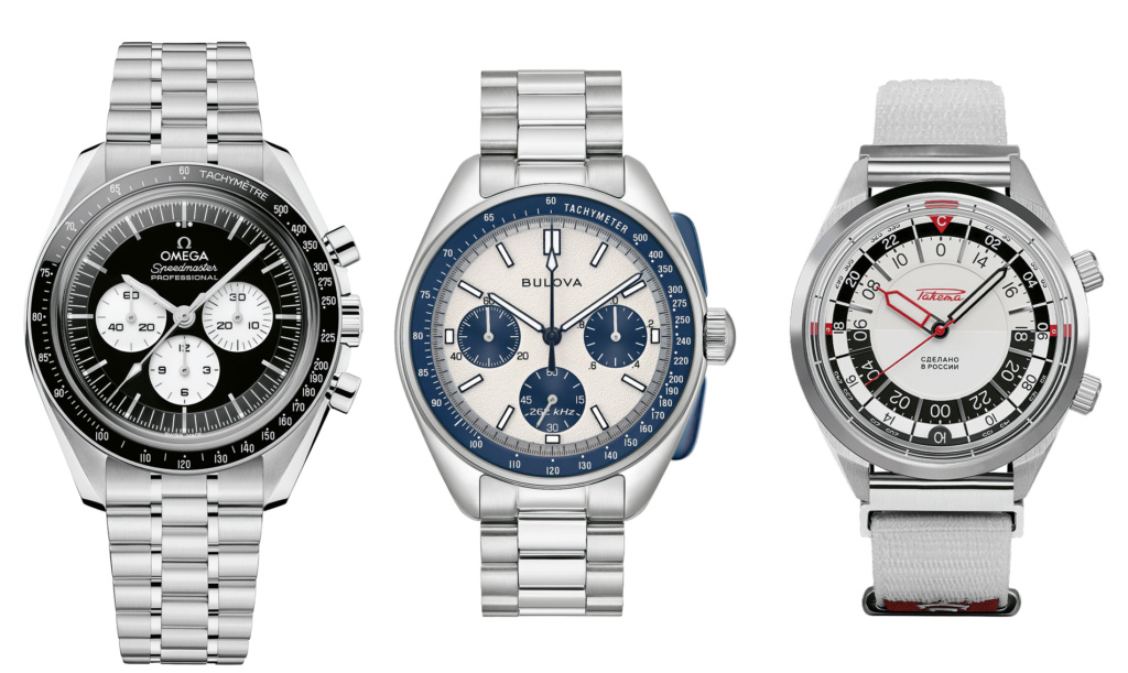 Elles sont plusieurs, les marques à accompagner l’aventure spatiale. Le 20 juillet 1969, Buzz Aldrin est le premier homme à porter une montre sur la Lune, un chronographe Speedmaster d’Omega. La marque biennoise va exploiter cette légitimité technique et en faire, jusqu’à aujourd’hui, un puissant levier marketing. De l’autre côté du rideau de fer, la marque Raketa, rachetée depuis et relancée par un investisseur anglais, a équipé les cosmonautes soviétiques. Plusieurs de ses modèles continuent de jouer la carte de l’espace.